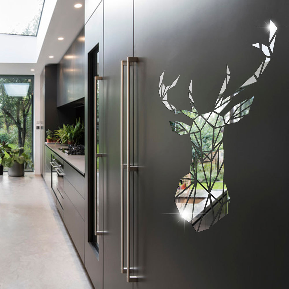 Self-adhesive Wall Stickers Deer Head Three-dimensional Acrylic Mirror
